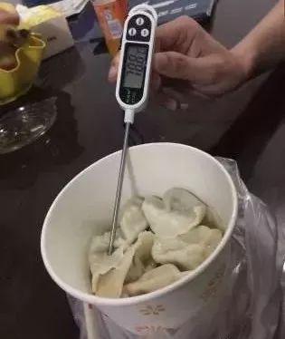 好吃不如饺子!速冻饺子放入锅内煮透、出锅,装碗,丈量温度,体现为78.8℃,风起云涌,需要一边吹一边才力小口咬着吃。