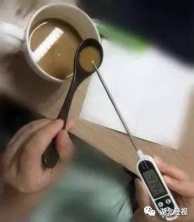 五分钟后,再次丈量,温度下降到49.6℃,此时可一口吞,但需徐徐下咽。