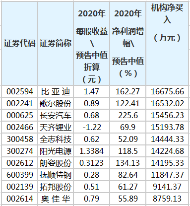 比亚迪等47只业绩大增股遭机构抢筹