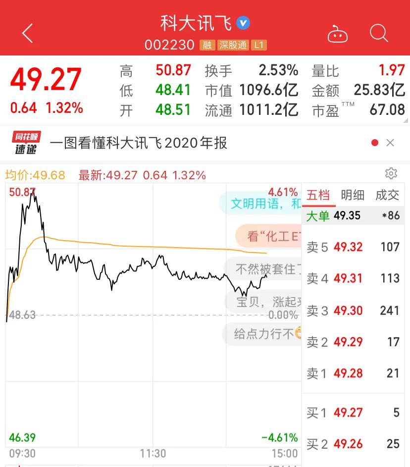 今日,科大讯飞冲高回落,市值1000多亿元。