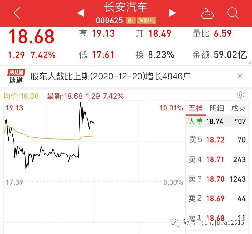 今日上午,一则消息再次引爆新能源车板块。长安汽车总裁王俊接受媒体采访时表示,长安汽车、华为公司和宁德时代共同打造的CHN架构下的首款高端智能电动车将于今年底发布。受此消息刺激,长安汽车股价由涨幅3%左右瞬间拉升至涨停板,午间收盘涨幅回落至7.42%。