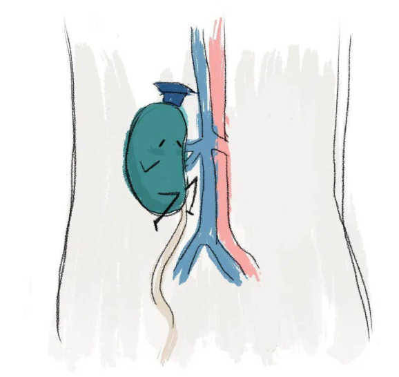 我们位于您身体的腹膜后,脊柱两旁,成对出现,由于右侧有肝脏存在,通常右肾位置比左肾略低,虽然我们个头不大,但我们绝对是您身体里的劳动标兵,不分昼夜的为您净化血液。