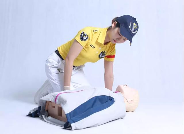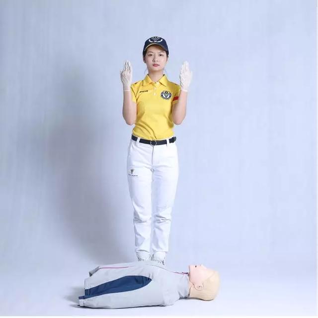 解开衣物,胸骨下1/2处,掌根重叠,十指相扣,身体前倾,上臂垂直向下按压。