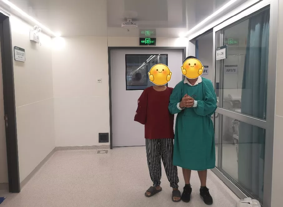 近日,在爱人陪同下,潘阿姨与爱人十指相扣走出了监护室,准备迎来新生活。