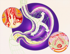 肠道伸张开来有10几米长,里面有无数肠道凸起,增加了与食物接触的面积。 食物在胃部与胃酸混合后,进入到肠道中,一路被蠕动着推动,一路被分解吸收,最终成为食物残渣、粪便