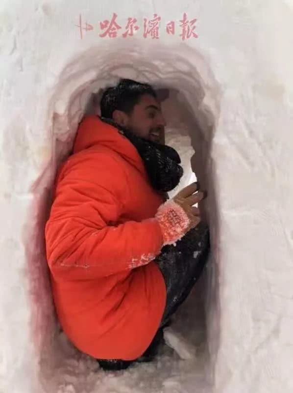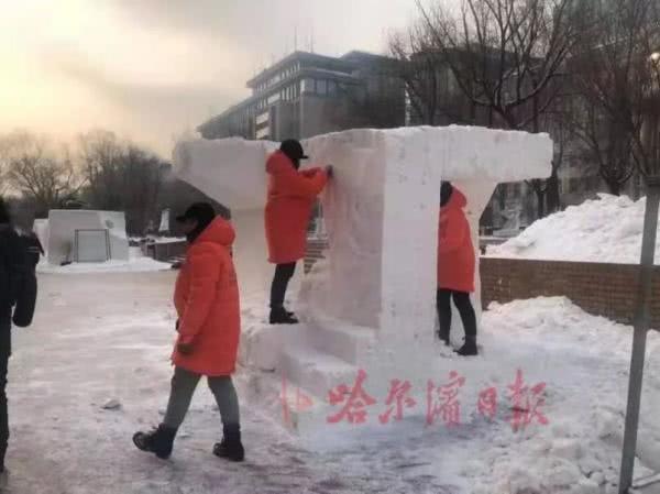 在一个正方形的大雪块里,把它的中间挖空,形成一个可以娱乐休息的“雪房子”……12月20日——22日,第三届哈尔滨工业大学冰雪嘉年华系列活动之国际高校雪构建造大赛在校园里举行。