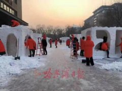在一个正方形的大雪块里,把它的中间挖空,形成一个可以娱乐休息的雪房子12月20日22日,第三届哈尔滨工业大学冰雪嘉年华系列活动之国际高校雪构建造大赛在校园里举行。 参加竞赛