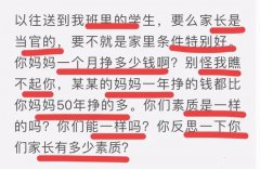 你妈妈一个月赚多少钱?别怪我瞧不起你! 某某妈妈一个月挣的钱比你妈妈50年挣得都多,你们素质能一样吗? 你们就是没见过有钱人是吧?看看某某,人家一天也不说话,而你们都是