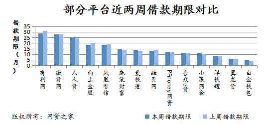 本周网贷行业平均借款期限为10.64个月,环比上周上升了0.57%。就样本平台而言,白金钱包上升幅度最大,增长1.12个月。人人贷、PPmoney网贷、洋钱罐、小赢网金分别增长0.56、0.43、0.36、0.34个月。相反,有利网从30.88个月降低至28.83个月,下降幅度达2.05个月。向上金服、融贝网、凤凰智信、合众e贷分别缩短1.54、0.95、0.71、0.20个月。其他平台平均借款期限无明显变动幅度。