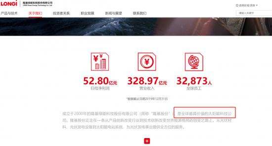 “隆基股份”成立于2000年,目前是全球最大的单晶硅产品制造商。隆基在其官网上,称自己为全球最具价值的太阳能科技公司,从光伏材料、光伏发电设备到太阳能电站系统,为光伏发电事业提供全方位的服务。