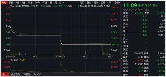 1月4日、5日,“吊牌之王”南极电商在无明显利空的情况下,连续出现跌停,累计下跌近20%。截至最新收盘,报收11.09元/股,总市值为272亿元。龙虎榜数据来看,两日“机构专用”营业部合计卖出总金额达3.22亿元。