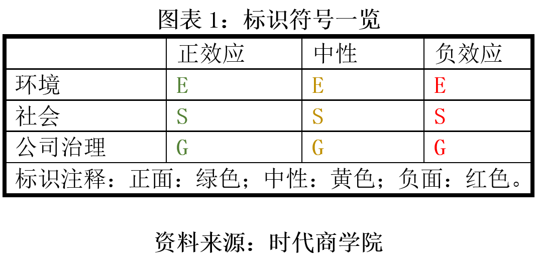 其中,每一事项的性质都会有相应的标识符号,E、S、G分别表示环境、社会与公司治理。绿色符号表示正效应事件,黄色表示中性(或无法表明影响)事件、红色表示负效应事件。