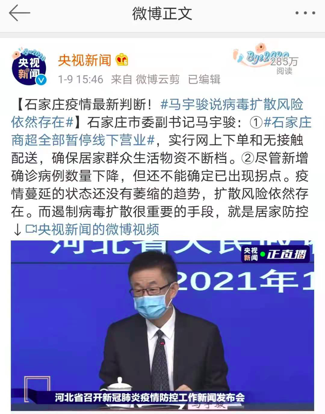 发布会上,相关负责人表示,在生活物资方面石家庄市主城区共有社区537个,小区3089个,农产品批发市场及便民的菜市场有90家,大中超市有59家,连锁便利店359家,社区便利店1200家,石家庄市商超等全部都已经暂停了线下的营业,转入线上销售,实行网上下单和无接触配送,确保居家期间群众生活物资不断档。