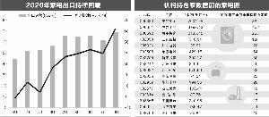 从出口情况来看,家电行业出口景气度持续提升。根据海关总署数据,2020年以来家电出口在疫情暴发初期经历了短暂下滑后,迅速复苏并保持高速增长,1月~11月家用电器出口金额同比增长20.6%;其中11月同比增长61.9%,环比提升22.3个百分点,创年内新高。