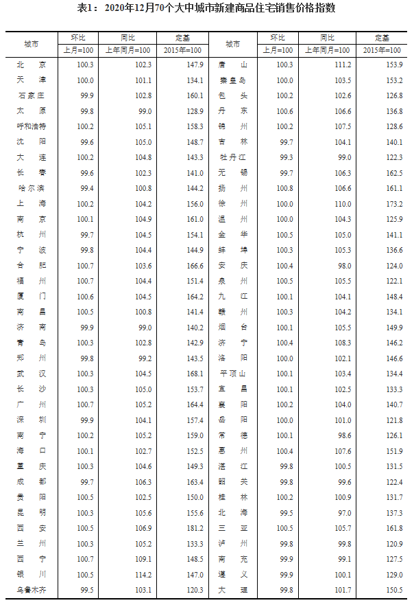 中国网财经1月15日讯 据国家统计局网站消息,统计局今日发布了2020年12月份70个大中城市商品住宅销售价格变动情况。数据显示,12月42城新房价格环比上涨,扬州涨0.8%领跑。具体如下: