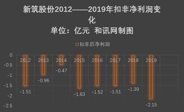如果按照2020年测算,新筑股份则实现了连续9年扣非后净利润亏损,这在A股上市公司中也不多见。