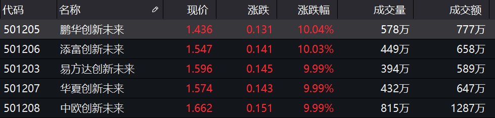 1月21日,5只创新未来基金场内份额在上交所上市,当日5只基金均以涨停收盘。