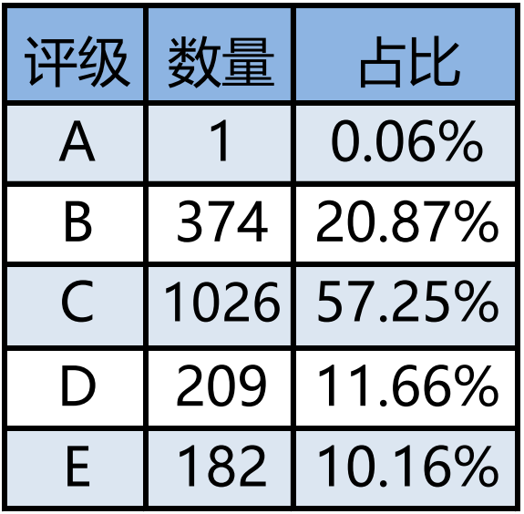 评级结果主要集中在B级和C级