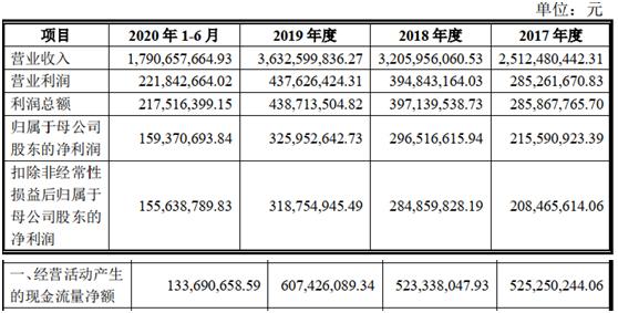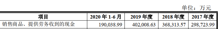 2017年至2020年1-6月,蓝天燃气营业收入分别为25.12亿元、32.06亿元、36.33亿元、17.91亿元;销售商品、提供劳务收到的现金分别为29.87亿元、36.83亿元、40.20亿元、19.00亿元。