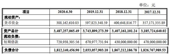 2017年末至2020年6月末,蓝天燃气资产总计分别为31.86亿元、34.07亿元、37.44亿元、34.87亿元,其中,货币资金分别为3.57亿元、4.01亿元、5.98亿元、3.88亿元。