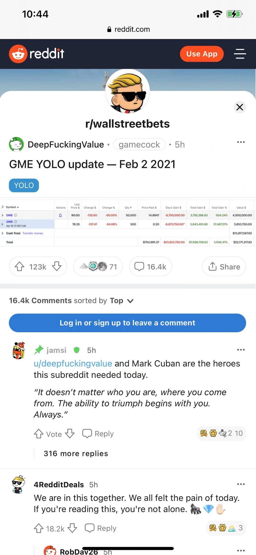 澎湃新闻此前曾报道,在散户大本营Reddit分论坛华尔街赌局(WallStreetBets,WSB)上,有一位“带头大哥”,其ID为DeepFxxingValue,正是他通过不断的晒单、发表评论预测,推动了散户对游戏驿站的热捧,带领着散户形成short squeeze(逼空、轧空),迫使空头大佬节节败退举旗投降。