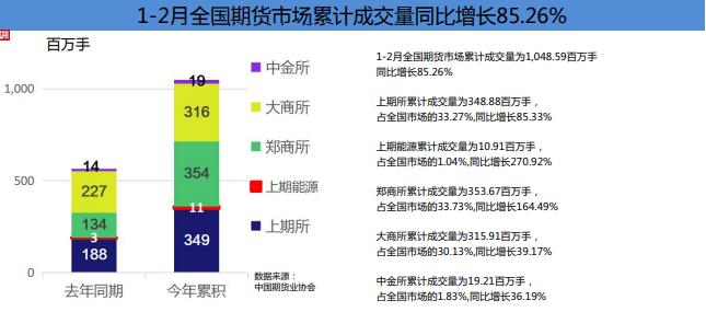 (1-2月全国期货市场累计成交量来源:中国期货业协会)