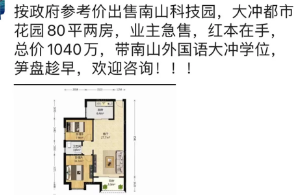 就连此前涨势如虹的深圳南山片区,也出现了和以参考价为售价的挂盘。中介朋友圈显示,一套大冲都市花园80平两房单位业主挂牌1040万,单价13万/平,完全与参考价一致。