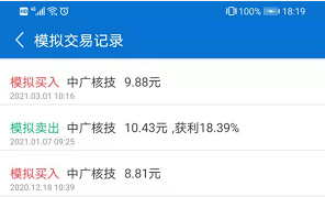 接下来,就让我们来看看机器人的精彩表现吧;例如,中广核技这只股票,Martin机器人早在去年12月18日就抄底了这只股,该股在经过一段时间的调整后,股价回升并迅速走出两连板,我们的Martin机器人趁此机会在1月7日及时卖出,获利18.39%;之后该股就进入了震荡调整阶段。而近期随着碳中和的持续拉升,核电股迎来新的发展机遇,在此影响下,该股股价有所回暖,Martin机器人在3月1日再度布局中广核技,然后该股一路上扬,截止到今日收盘,该股累计获利22.27%。
