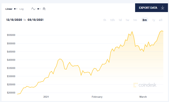 3月13日晚间,比特币价格短线拉升,在突破59000美元大关后迅速站上60000美元,最高价达到60322.6美元。根据比特币新闻资讯网Coindesk,截至 21:00,比特币价格回落至59753美元,24小时上涨5.8%,24小时内成交量为587.3亿美元,市值约为1.11万亿美元。就在2月16日,比特币价格突破50000美元。