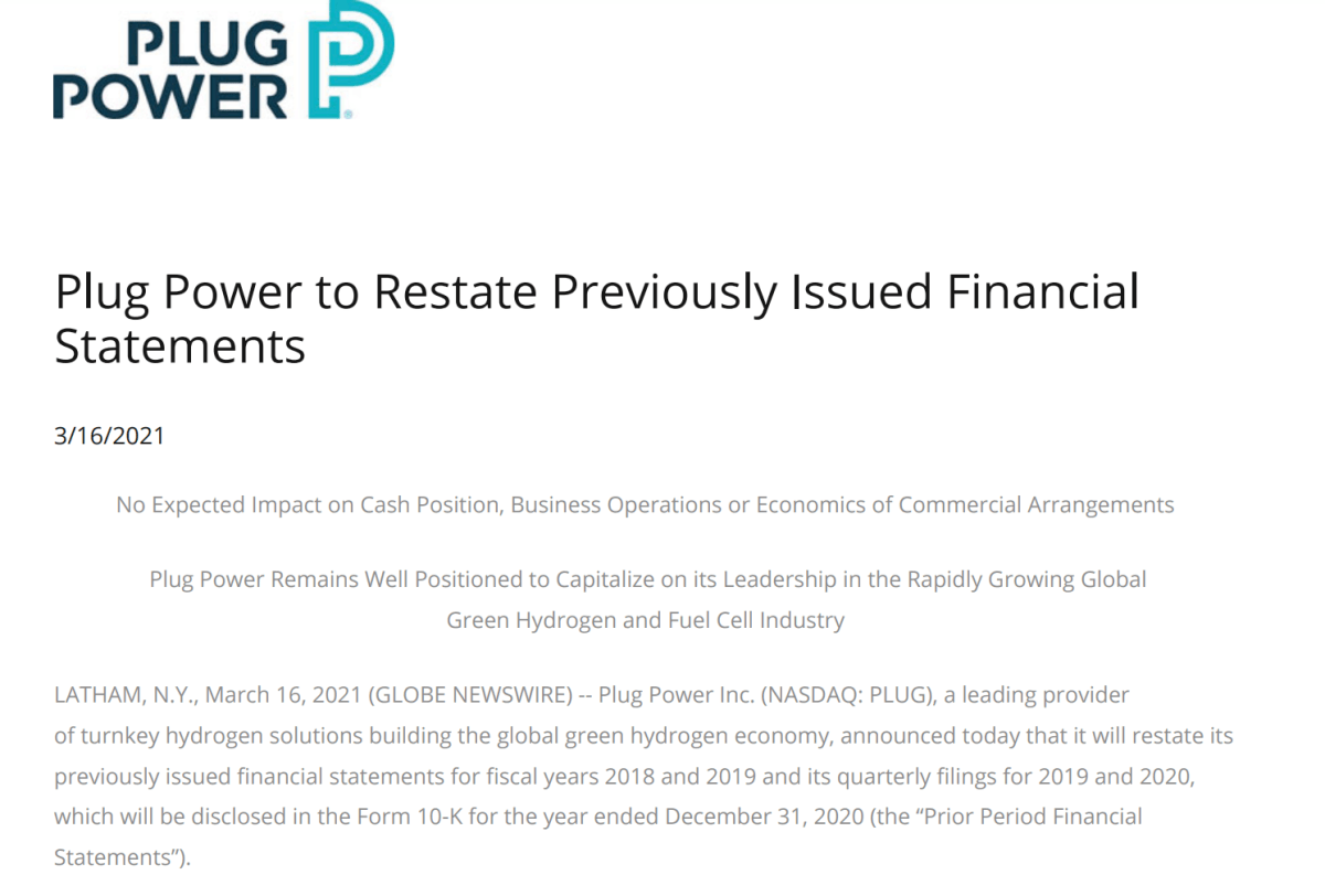 普拉格能源周二晚间发布公告称「此前提交的财报存在错误」,涉及2018和2019年的年报,以及2019和2020年的季报。受此影响,今年2月25日发布的四季报、全年财报和致股东信都不再作数,公司将「尽快」提交修改后的财报。