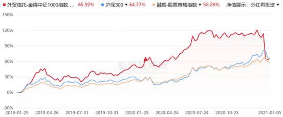 外贸信托-金锝中证1000指数增强3号成立于2019年1月29日,截至2021年3月5日,该基金的累计单位净值为1.6592元。由于该基金曾于2020年2月21日进行过分红(0.6501元),该基金的最新净值为1.0055元。