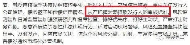 上交所的这个要求本身是没有任何问题的,通过信用债券的严格审核,可以防控信用债券市场的风险,维护市场秩序。但是从实践来看, 对于弱资质发行人来说,尤其是弱资质的城投公司,融资寒冬要到来了。