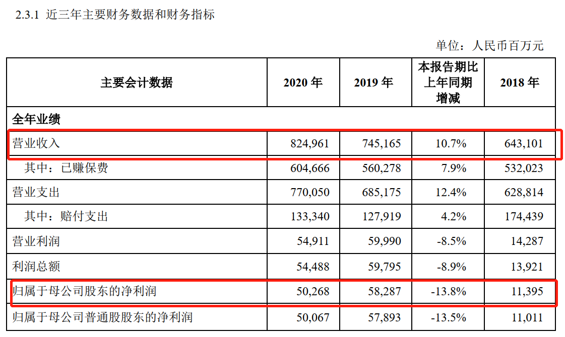 报告期内,中国人寿实现营业收入8249.61亿元,同比增长10.7%;实现保费收入6122.65亿元,同比增长8.0%;总资产达4.25万亿元,较2019年底增长14.1%;实现归属于母公司股东净利润为502.68亿元,同比下降13.8%;每股收益1.77元,较去年下降0.28元。