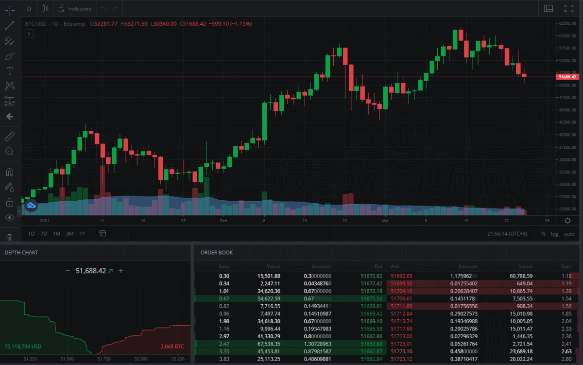 比特币近日走势不佳,现报51688.42美元/枚,较高点61781美元回调约17%。