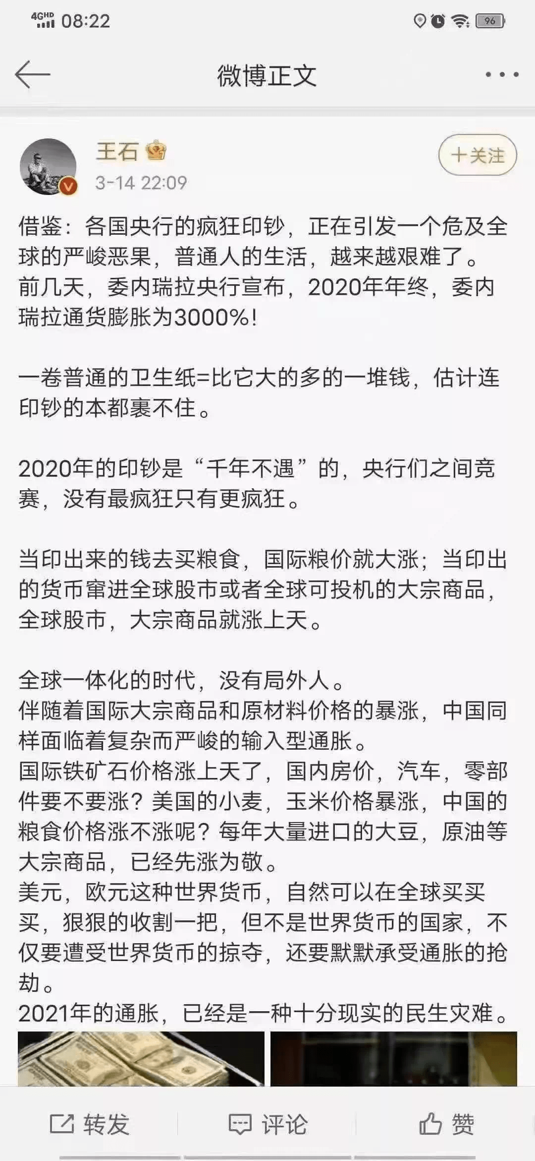 ▲图片来源于网络某地产大佬3月14日在微博发表的文章引起了巨大轰动:他表示2021年的通胀,已经是一种十分现实的民生灾难,全球没有局外人,包括我们自己。2021年通货膨胀问题再次被推到了了风口浪尖。