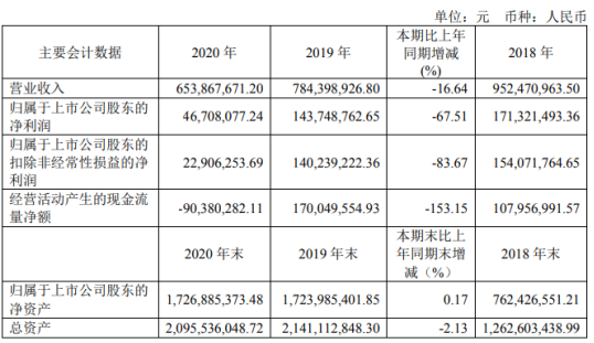 挖贝网4月8日,通达电气(603390)近日发布2020年度报告,报告期内公司实现营业收入653,867,671.20元,同比下滑16.64%;归属于上市公司股东的净利润46,708,077.24元,同比下滑67.51%。