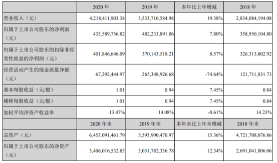挖贝网4月12日,航天电器(002025)近日发布2020年度报告,报告期内公司实现营业收入4,218,411,903.38元,同比增长19.38%;归属于上市公司股东的净利润433,589,756.82元,同比增长7.80%。