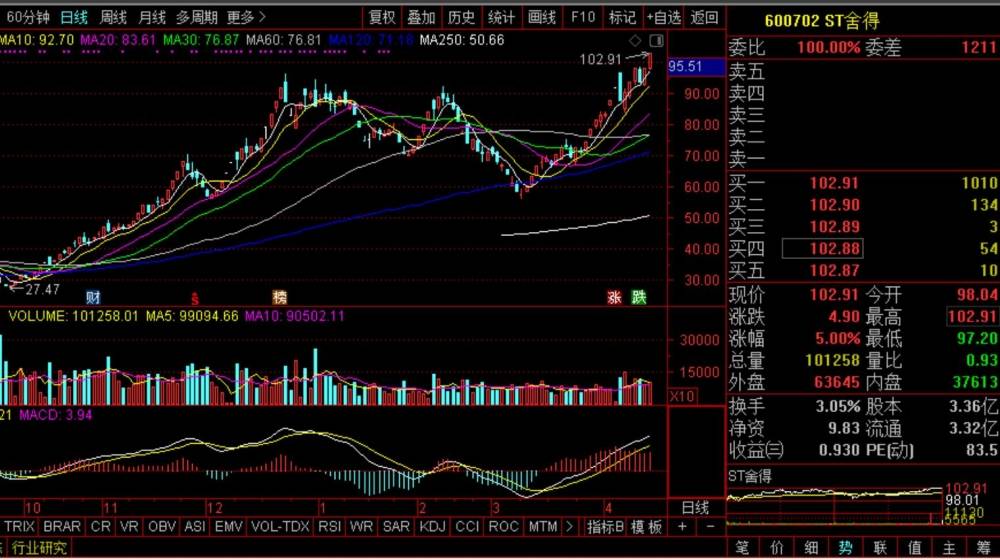 2021年4月15日,此前25个交易日里17次涨停、A股市场股价最高的ST股——ST舍得,在强大买盘的不断推动下,又一次冲上了涨停板,报收于102.91元。这是ST舍得上市以来股价首次突破100元大关,同时也是A股成立31年来首次诞生100元以上的ST股。