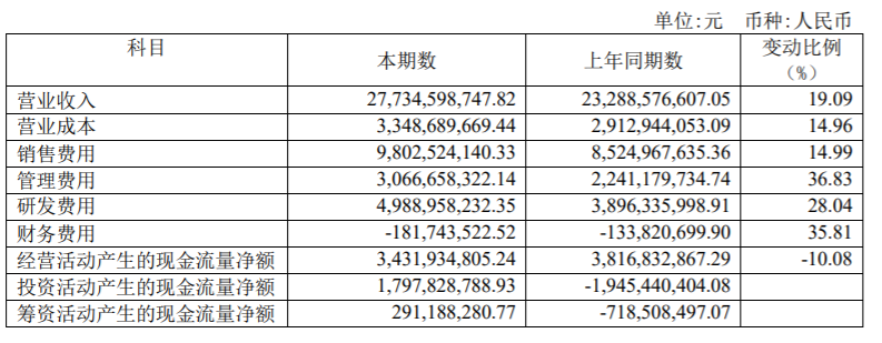 截至3月31日,恒瑞医药今年第一季实现营业收入69.29亿元,同比增长25.37%;剔除股权激励费用影响,报告期归属于上市公司股东净利润较上年同期增长 24.24%,归属于上市公司股东的扣除非经常性损益的净利润较上年同期增长 26.04%。