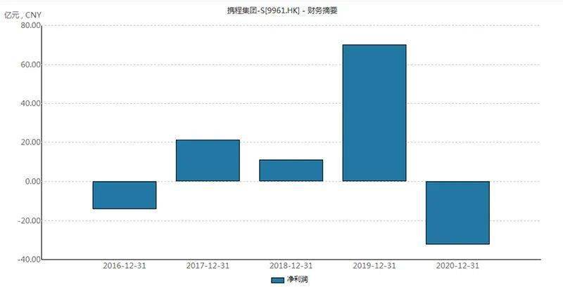 数据披露显示,受疫情影响,携程总收入自2019年的357亿元减至2020年的183亿元,减少49%。2018年、2019年净利润分别为11.12亿元、70.11亿元,但是在2020年录得净亏损32.47亿元。