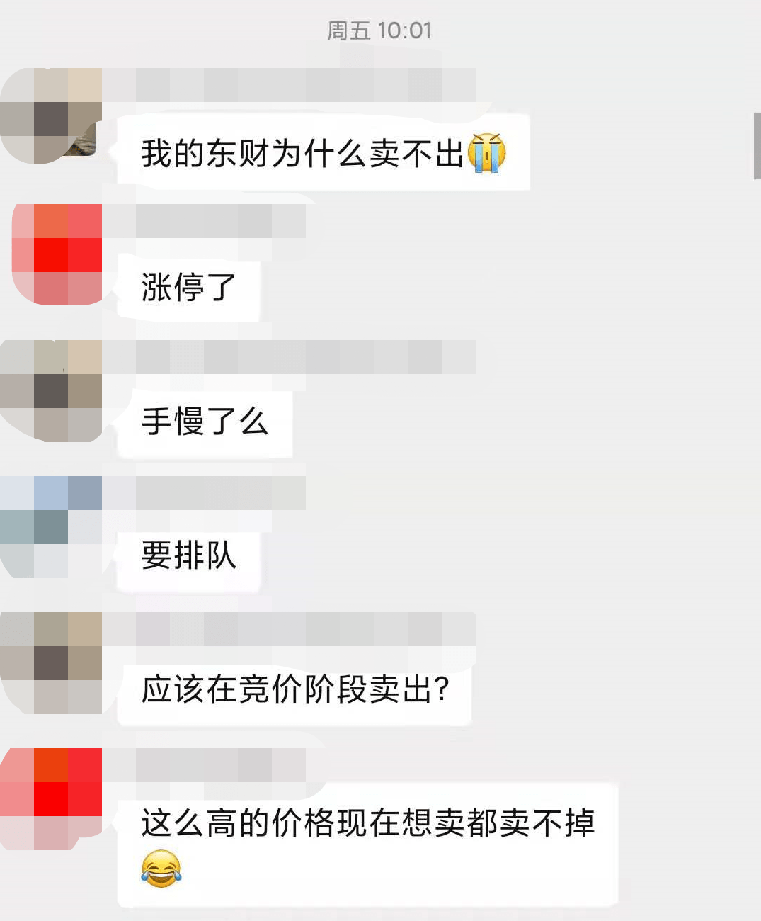 周五东财转3在深交所挂牌,开盘就涨到30%,所以直接停牌至14:57。如果你不是一开盘就卖掉,那就只能在最后3分钟,按挂单的顺序成交。
