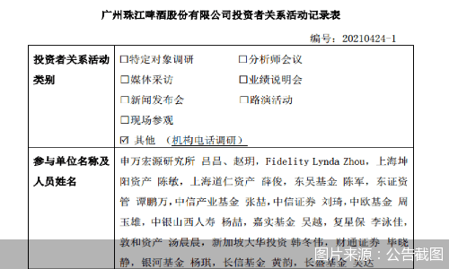 值得注意的是,本次调研活动后一日,即4月25日,珠江啤酒发布关于控股股东的一致行动人股份减持计划的预披露公告。