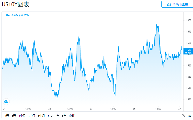 行情数据显示,10年期美债收益率周一上涨0.8个基点,报1.572%,盘中一度逼近1.60%关口,不过尾盘时回吐多数涨幅。在过去一周,10年期美债收益率已多次在1.60%关口前方承压。