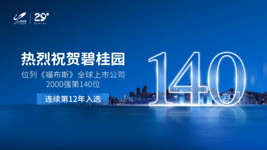 连续第12年上榜!碧桂园位列福布斯全球上市公司2000强第140位