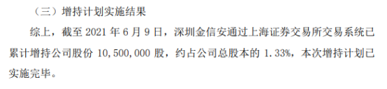 本次增持计划完成后,深圳金信安持有公司股份204,194,341股,约占贵公司总股本的25.88%;深圳金信安及其一致行动人兴宁市金顺安投资有限公司、兴宁市众益福投资有限公司合计持有贵公司股份369,331,369股,占公司总股本的46.81%。