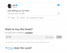 推特(Twitter)CEO杰克多西(Jack Dorsey)似乎想把他2006年发布的首条推文作为一个非同质化代币(non-fungible token,NFT)卖掉。 3月6日下午,多西发布了一个指向平台Valuables的链接,页面打