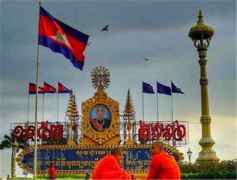 柬埔寨是中南半岛最南端的一个国家,与金三角的三个国家接壤。其西部及西北部紧邻泰国, 东北部与老挝交界, 东部及东南部与越南毗邻,南部则是面向暹罗湾。 在1863年,柬埔寨沦