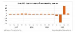 财联社(上海,编辑 吴斌)讯,北京时间周四晚间,美国商务部公布GDP数据,尽管第四季度经济小幅反弹,但2020年GDP仍萎缩3.5%,创下1946年以来新低,也是2009年以来首次录得负值。 (来源