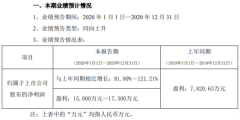 挖贝网 1月17日,*ST永泰(600157)发布2020年年度业绩预告:预计2020年度实现归属于上市公司股东的净利润为462,000万元-480,500万元,与上年同期(法定披露数据)相比,增加447,982万元-4