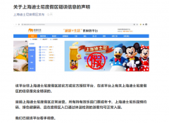 1月18日,上海迪士尼度假区官方微信号发布消息称,一名为旅通在线的平台非上海迪士尼度假区官方平台的官方或官方授权平台,该平台上有关上海迪士尼度假区的信息是完全错误的。